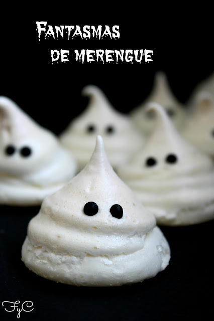 ¿A quién no le encantaría devorar un fantasmito de estos? Suaves, dulces, se deshacen en la boca. Lo mejor es que quedan muy divertidos encima de la mesa.