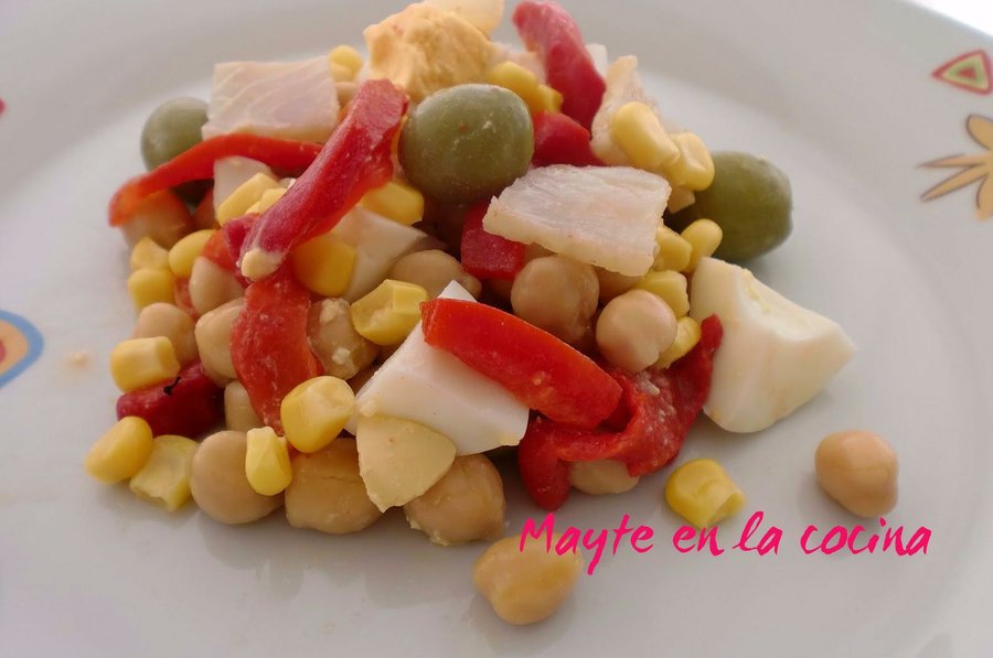 Necesitas: garbanzos, bacalao salado, olivas, maiz