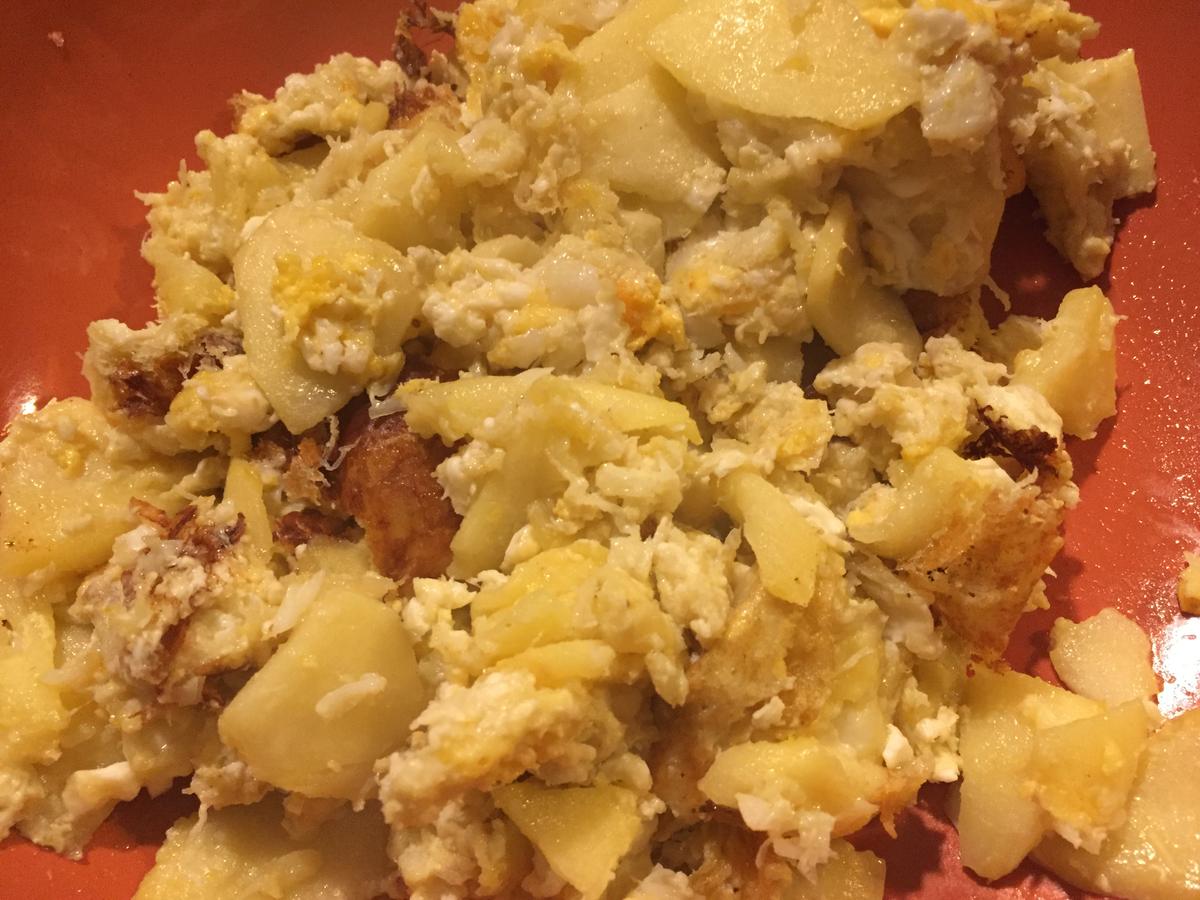 Finalmente incorporamos los huevos, cuando veamos que empieza la clara a ponerse blanco los empezamos a revolver.