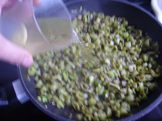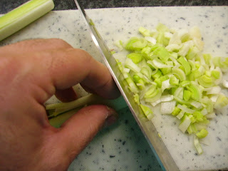 2.- Cortamos el puerro, quitamos una capa y picamos menudito. Lo añadimos.