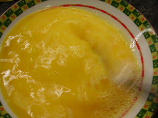 7.- Mientras batimos 2 huevos completos y dos claras más. Lo agregamos a la sartén. (Lavar la cascara, antes de abrir los huevos)