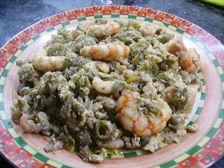 1/2kg Habitas Tiernas,200gr. Gambitas Arroceras,200gr. Gambones,1 Puerro,2 Dientes de Ajo,1 Vaso Vino Blanco,Sal,Aceite de Oliva Virgen Extra,Orégano,Sal de AjoBueno ya son pocas las habitas que me quedan, ayer quité todas las plantas y recogí las que quedaban, así que dentro de poco dejaré de hacer revueltos de habitas, ja,ja,ja. Ahora tocar abonar y esperar unas semanas para plantar hortalizas de primavera. Hoy voy a combinar los frutos del mar con los frutos del campo y la verdad es que el resultado es bastante sabroso. 1.- Comenzamos lavando las habitas y picándolas en una sartén.