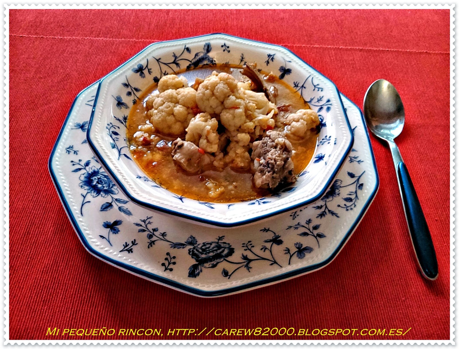Para 4 personasIngredientes:- 1 conejo en trozos- 1 coliflor normal- 2 vasos de arroz- 1 pimiento verde- 1 pimiento rojo- 1 puerro- 2 dientes de ajo- 1 vaso de vino blanco- agua- aceite - pimienta blanca- sal Elaboración:Lo primero que tenemos que hacer es cortar la coliflor en trozos parecidos, los lavamos y reservamos.Cortamos los pimientos y el puerro en trozos pequeños y los ponemos en una caz ...