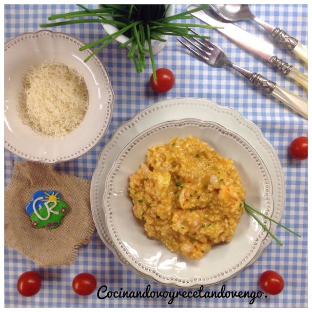 Hola a tod@s!! El arroz nos encanta a todos en mi casa y los risottos no iban a ser menos ;). En esta ocasión un risotto con sabor a mar que seguro que os encantará, fácil de hacer y con resultado elegante y delicioso.En esta ocasión para aprovechar todo los sabores de las gambas he elaborado un buen fumet, que podremos elaborar con antelación y así la receta la tendremos lista en unos minutos si ...