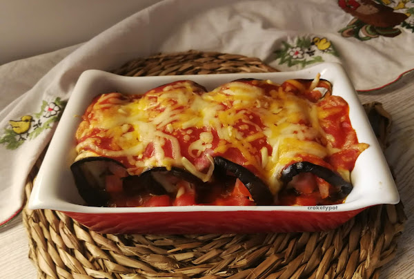 Enrollamos un trozo de la berenjena, con una anchoa y con un trocito
