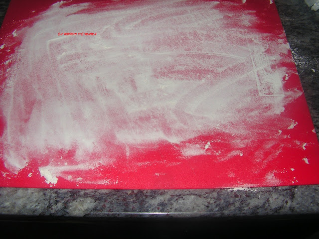 PONEMOS UN POCO DE HARINA EN EL MARMOS O EN LA MESA DE TRABAJO.