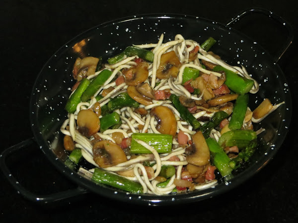 Estamos en temporada de espárragos trigueros y el otro día preparé esta cazuela que estaba para chuparse los dedos. Ingredientes:- 8 espárragos trigueros.- 80 gramos de champiñones.- 100 gramos de gulas.- 50 gramos de tacos de jamón.- Dos dientes de ajo.- Media cebolla.- Aceite de oliva virgen extra.- Sal.Elaboración:Pasamos l ...