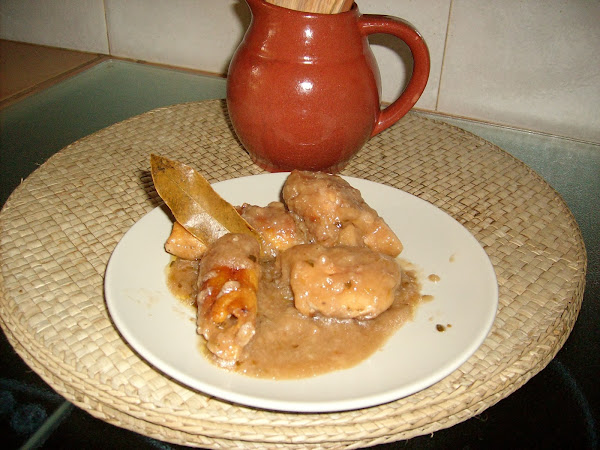 Hoy he preparado para cenar unos rollitos de pechuga. Fáciles y rápidos. Necesitamos: 6 filetes de pechuga, 6 lonchas de jamón de york, 6 lonchas de queso, un vaso de vino blanco, aceite, una cucharada de mantequilla, sal y pimienta. Extendemos las pechugas y las aplastamos. Ponemos encima de cada pechuga jamón de york y el queso, enrollamos y atamos. Ponemos la mantequilla y un chorri ...