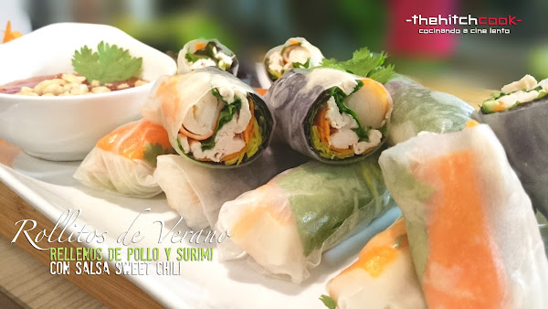 250 g de langostinos pelados,1 pechuga de pollo,1 paquete de papel de arroz para los rollitos,1 lechuga rizada,3 zanahorias pequeñas,hierbabuena,cilantro,cebollinoPara salsa :