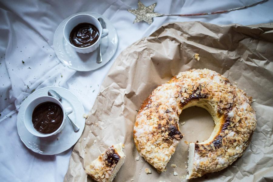 Un chocolate caliente y a disfrutar de un roscón de reyes casero. Yo que no soy una experta para nada cocinera, me pareció sencillo pero muy cansado lo de tener que esperar tanto con los tiempos. Era la primera vez que tardaba tanto en cocinar algo, pero el resultado final mereció la pena. También al ser la primera vez tuve que mirar la receta muchas veces, menos mal que al ser en video, era más fácil todo para seguir los pasos.