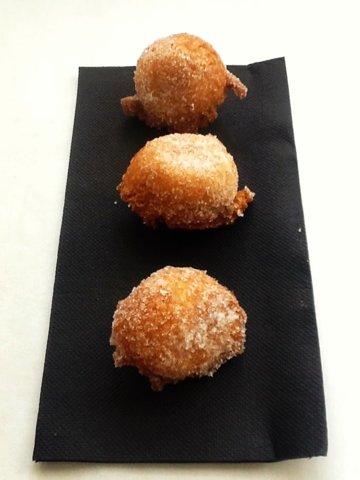 Rápidamente cogeremos cada uno con cuidado de no apretarlos para no quemarnos y los rebozaremos con abundante azúcar.