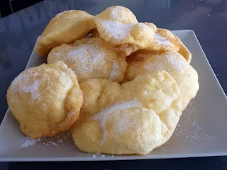 Cuando el aceite esté calentito echaremos los doce roscos y cuando empiezan a flotar vamos volteando con una espumadera ó con un tenedor.
