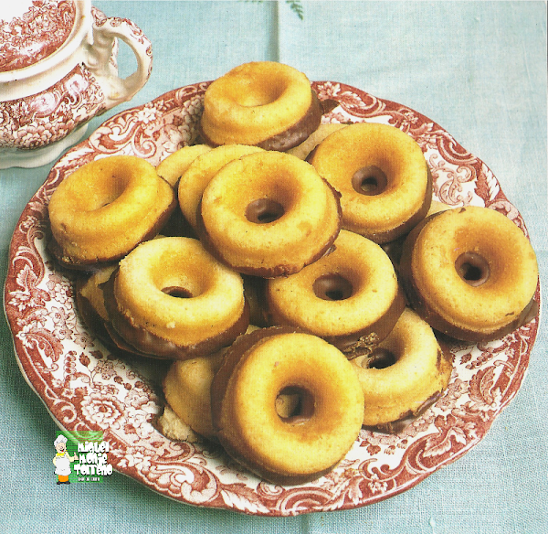Estas rosquillas, reciben realmente el nombre de Babas, Es un dulce elaborado en el horno, muy tradicional de Francia, aunque en Nápoles, se preparan también. Tiene forma de rosquillas, cuyo diámetro puede variar. la masa es más ligera que la del bizcocho y se emborracha en almíbar perfumada de licor. La receta que os dejo, las terminado con chocolate de cobertura.