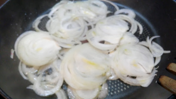 1. Calienta un poco de aceite en una sartén y corta la cebolla en láminas finas.