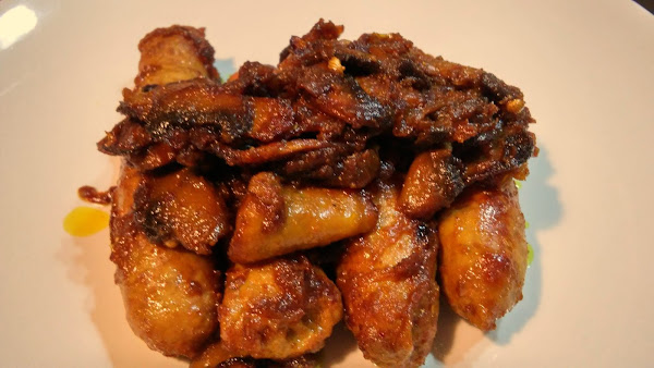 La palabra "curry" deriva de la palabra tamil "kari" que significa salsa, y se refiere generalmente a carne o vegetales cocidos con especies.