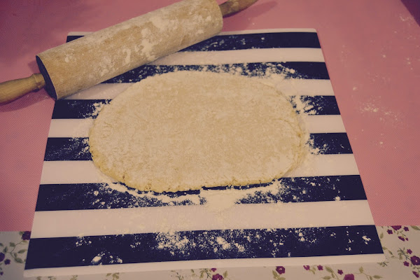 Una vez pasado ese tiempo, retiramos la masa de la heladera, y enharinamos una base y con palo de amasar la vamos a estirar no muy fina, y con un cortante redondo sacamos los scones.