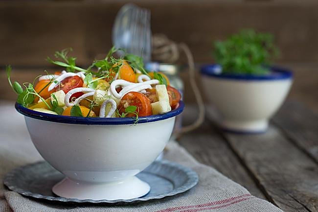 Puedes ver la receta completa aquí: ensalada de tomates y pepino con gulas