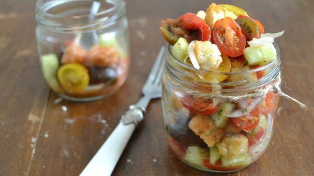 PANZANELLA En mi recorrido por la Red, me he topado con esta maravilla que nos deja Cuuking!, una ensalada tradicional de la Toscana que estoy deseando probar. Los ingredientes básicos son tomates cherry, pepino, pan de pueblo, pimiento, cebolleta y otros condimentos. La preparación consiste en mezclar todas las hortalizas debidamente cortada, luego se aliñan y se dejan en la nevera una hora, al servir se añade el pan troceado y salteado.