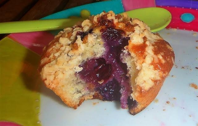 Continuamos con estas deliciosas magdalenas del blog Les receptes que m'agraden. Además de estar ricas tienen un jugoso corazón de arándanos que las hace muy interesantes.