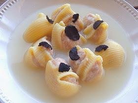 Desde el blog Les receptes que m'agraden me traigo esta sopa o caldo que lucirá de lujo en cualquier mesa navideña. Los galets van rellenos con una mezcla de carne y trufa, que aporta un toque muy festivo y sabroso al plato, toda una tentación.
