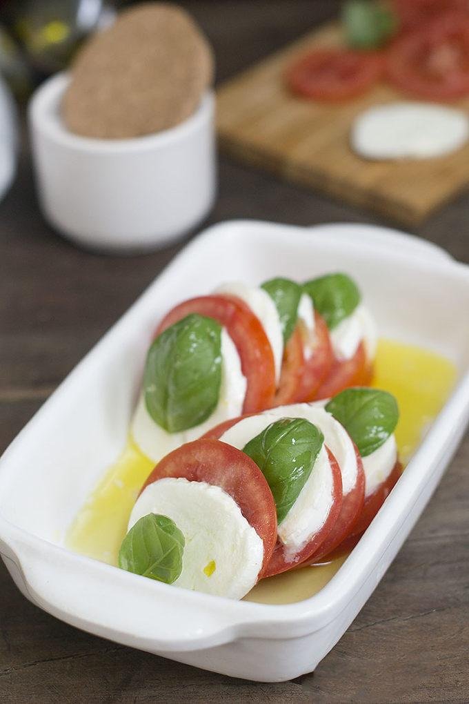 Los ingredientes básicos son el tomate, la mozarella de búfala, albahaca y aceite de oliva virgen. Se cortan en rodajas unos tomates de buena calidad y se entremezlcan con la mozarella y las hojas de albahaca enteras. Se aliña con el aceite y sal, opcionalmene podéis agregar otros ingredientes que CatMan os indica en su blog.