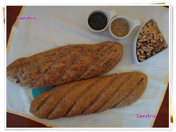 500 gr de harina de mediza fuerza,1 pizca de azúcar,1 cucharada de sal,1 puñado de semillas de amapola,4 cucharadas de aceite de oliva,agua templada,25 gr de levadura de panaderoPuedes amasarlo a mano o en la máquina de pan.