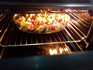 Cuando ya tenemos la temperatura del horno, vamos a introducir la bandeja (en mi caso una fuente de cristal), para 60 minutos más o menos, dependiendo de cada horno.