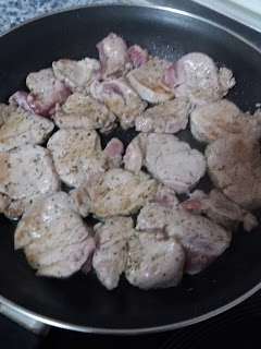 Primero troceamos en rodajas el solomillo, le vamos a echar sal y hierbas provenzales y lo vamos a pasar por la plancha por los dos lados, solo un poquito para que coja color y forma.