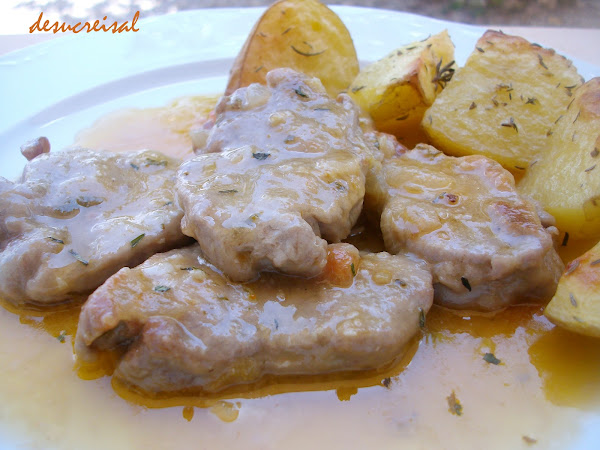 1 solomillo de cerdo,2 dientes de ajo,1 vasito de cava,1/2 litro de caldo de carne de Gallina Blanca,aceite de oliva,sal,pimientaSaltear los ajos en el aceite, sin que tomen color, añadir el solomillo, sazonar con sal y pimienta y seguir dorando todo el conjunto.