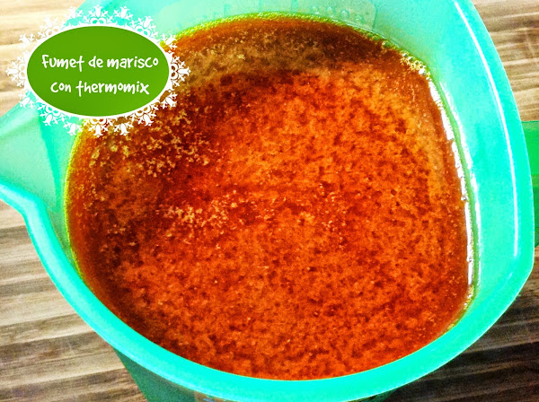 Pela las gambas, pon la cáscaras y las cabezas con el agua (reservar los cuerpos) en el vaso y programa 5 minutos, 100º, velocidad 4.( yo la puse a velocidad 2, en la cuatro saltaba demasiado) Cuela y reserva. Lava muy bien el vaso y la tapadera.