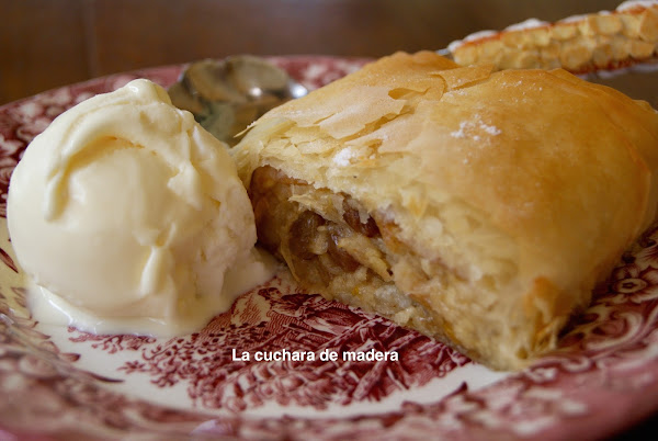 Para hacer un Strúdel fácil puedes hacerlo con masa filo. Este tipo de masa la encuentras en la sección de refrigerados del supermercado (suelen tener siempre en Mercadona) y es la más parecida a la masa tradicional del ApfelStrudel.