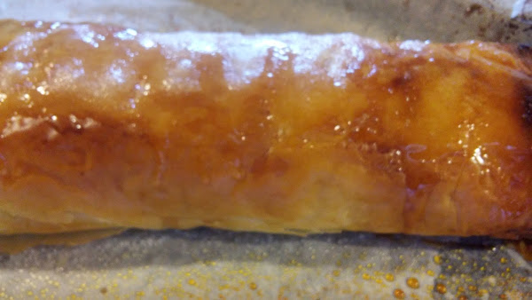 3. En una fuente de horno cubierta con papel sulfurizado, coloca una lámina de pasta filo,