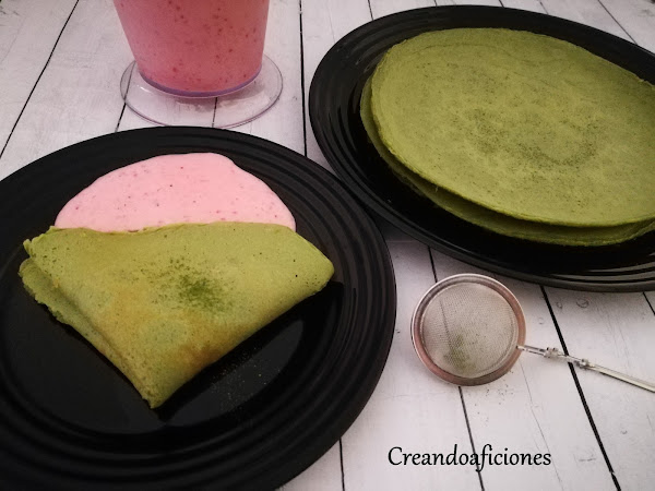 En primer lugar, con una batidora mezclamos todos los ingredientes. Después ponemos una sartén al fuego y, cuando esté caliente, pintamos con un poquito de aceite y vertemos la mezcla. Procurad que quede una capa lo más fina posible (que la mezcla simplemente cubra el fondo de la sartén).Cuando veamos que se pueda despegar fácilmente le damos la vuelta con cuidado para que se hagan por el otro lado. Repetimos el procedimiento con cada crepe (salen entre 4 o 6 crepes dependiendo de la sartén). Una vez listas, las dejamos enfriar y reservamos.