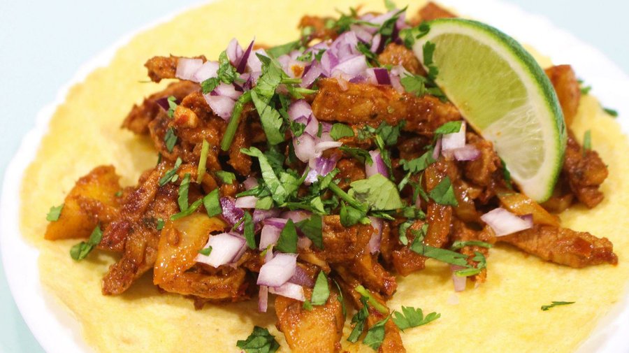 Montamos esa mezcla sobre tortilla de trigo y acompañamos de cebolla morada, cilantro, un chorrito de lima y... ¡a disfrutar los deliciosos tacos.