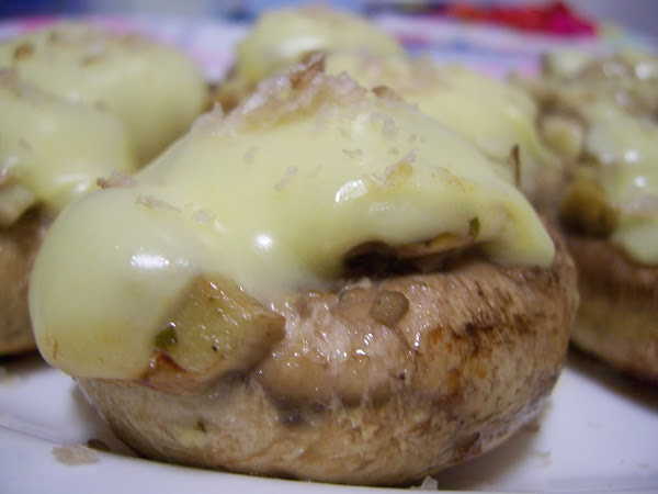 500 gr. de champiñones,,2 dientes de ajo,,Perejil fresco,,Mozzarella,,Queso Emmenthal,Aceite de oliva,Hiervas provenzales (albahaca orégano etc.),Vino blanco,y sal.1. Se lavan y limpian bien los champiñones.
