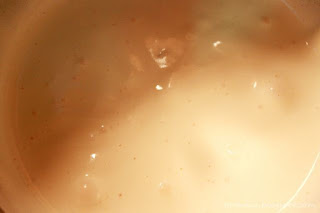 Preparamos el almíbar colocando al fuego el azúcar y cubriéndolo con agua justo por encima, removeremos continuamente hasta que comience a tomar el punto adecuado, que sera cuando pierda esa liquidez y espese un poquito y sin color.Retiramos del fuego.