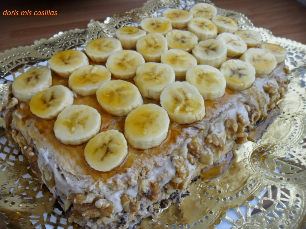 Leche 3/4 l. galletas 30 unidades mantequilla 100 gr. gelatina 2 hojas cuajo 5 gotas plátanos 2 unidades azúcar 3 cucharadas miel 2 cucharadas nueces 4 unidadesFuente: Receta enviada por Pamela