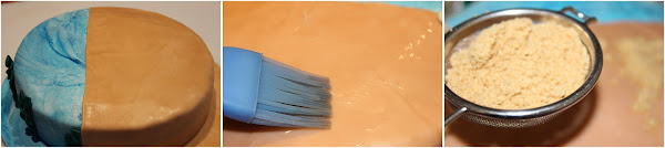 Cubrí fondant color arena y lo pincelé por encima con agua para que se pegara bien la arena.