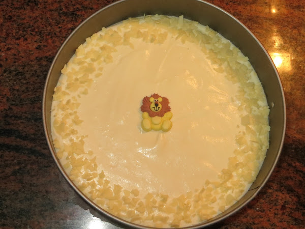 ponemos una plancha de bizcocho, ponemos la nata, otra plancha de bizcocho y encima los fresones con la gelatina, los dejamos caer y los vamos colocando con cuidado para cubrir toda la plancha de bizcocho. Dejamos enfriar 8 horas.