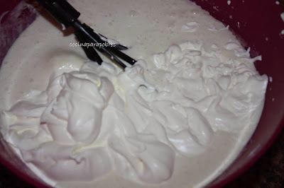 Agregamos las claras montadas al cuenco donde tenemos la leche y mezclamos con movimientos envolventes para que no se baje.
