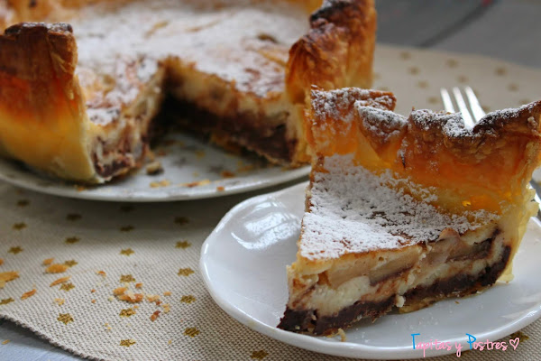 - Lo primero es precalentar el horno a 200º, mientras preparamos la tarta. Mezclamos la leche, huevos, azúcar y harina. A continuación añadimos la almendra molida, la mantequilla y la vainilla. Mezclamos bien y reservamos. Engrasamos con mantequilla el molde a utilizar, y disponemos sobre él la masa de hojaldre, a continuación, extendemos la crema y cubrimos con las láminas de manzana. Horneamos unos 35 min a 180º (depende del horno de cada uno). Dejamos enfriar y desmoldamos. Podéis decorar a vuestro gusto, con azúcar glass, un poco de canela, con unas guindas..... Y ahora, como no, a disfrutar........espero que os guste.
