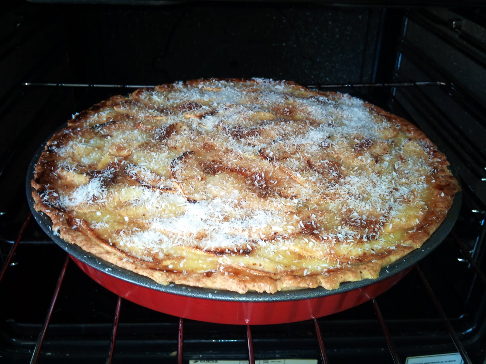 Lo primero de todo es preparar la crema pastelera. Para ello colocamos la leche, separando un poco para la maicena, el azúcar, el huevo y la esencia de vainilla en un cazo y lo ponemos al fuego. Lo batimos sin parar con unas varillas, cuando valla a hervir se pone la maicena disuelta hasta que hierva un minuto. Entonces retiramos del fuego y dejamos enfriar.Ahora vamos a hacer la masa. Colocamos sobre una encimera limpia la mantequilla, el azúcar, la harina y el huevo y mezclamos todo con las manos, aunque sin amasar, sólo uniendo los ingredientes. (también se puede hacer la tarta con una lámina de hojaldre comprada. En este caso se hornea 15 minutos a 185 grados, y luego se vierte la crema y las manzanas)Cogemos una tartera y colocamos trozos de masa en el fondo, aplastándolos con la mano. Luego añadimos la masa de borde, y pinchamos con un tenedor tanto el fondo como los bordes, para que no suba mucho. Se pone en la nevera un rato, hasta que se enfríe bien la cremaEntonces vertemos la crema pastelera, y luego añadimos las manzanas cortadas en gajos finos. Espolvoreamos canela. Metemos la tarta a cocer en el horno precalentado, un poco más de media hora, a unos 185 grados. Cuando esté dorada la sacamos y con un pincel le esparcimos mermelada de melocotón y un poco de coco rallado. Se mete un rato con el horno apagadoPosted 18th July by SoleLabels: Postres 1 View comments