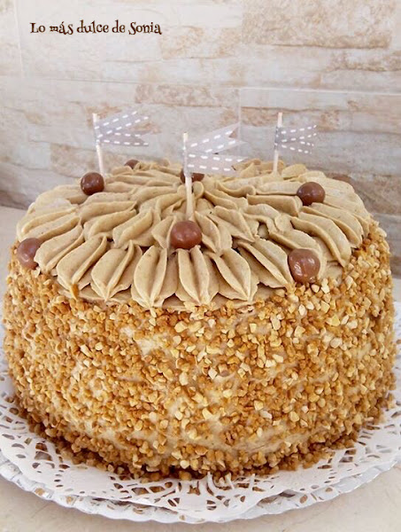 El bizcocho se corta por la mitad, se cala con el almíbar, se rellena de natillas, cubrimos y calamos la parte de arriba se espolvorea con un poco de cacao. Se mete en la nevera.