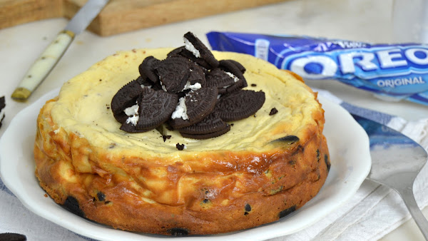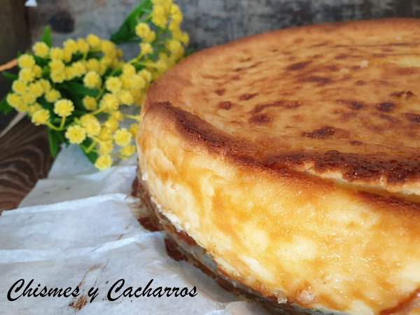 Veremos que la tarta sube mucho, es normal después bajará; Para saber si está hecha pinchamos con un palillo y cuando salga seco la sacamos del horno, esperamos que se temple y le damos la vuelta como si fuera un flan.