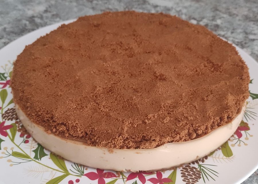 Desmoldamos con cuidado, espolvoreamos con más galletas trituradas y … a disfrutrar.