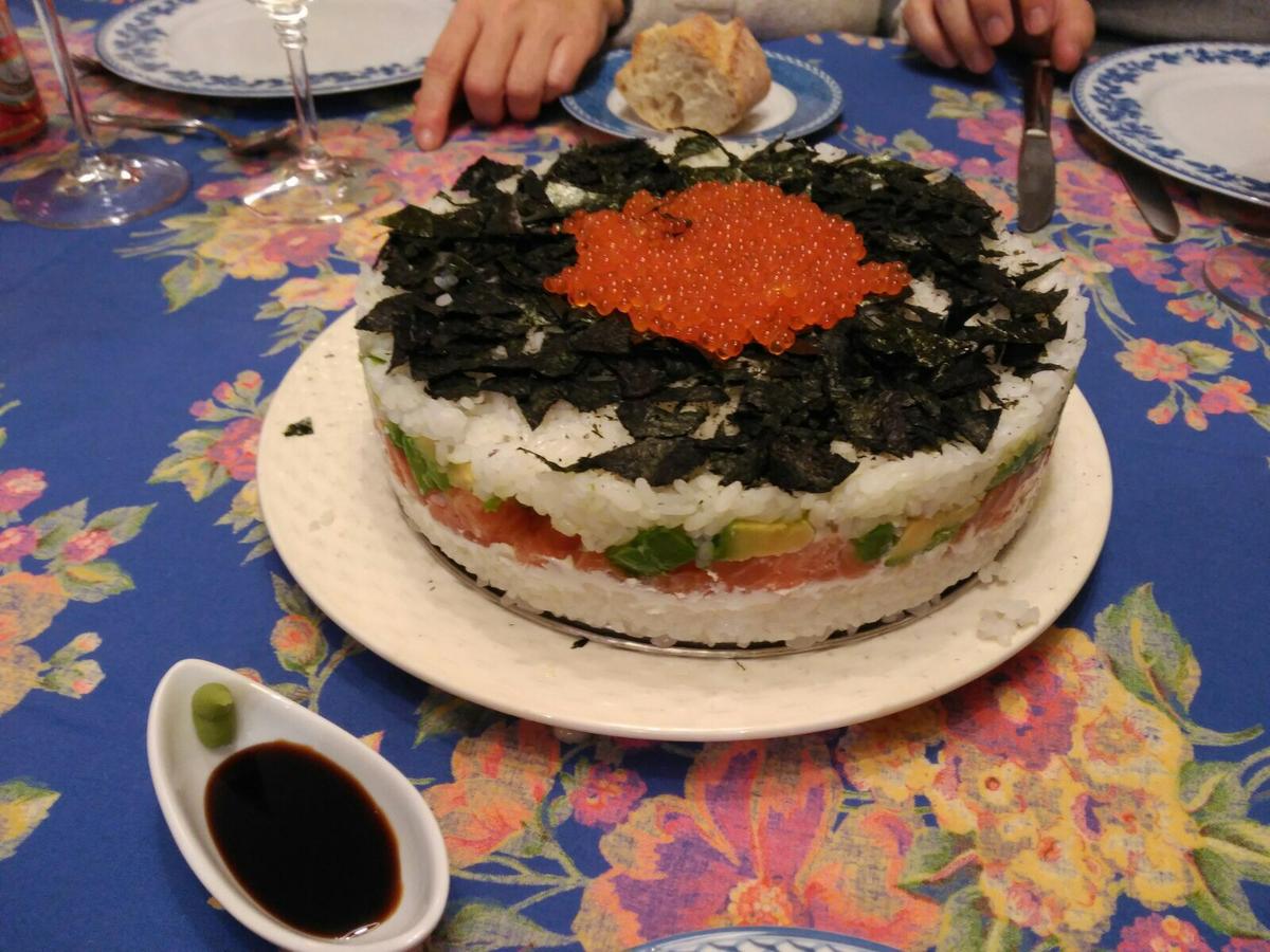 Hoy hacemos una tarta gigante de Sushi o Sushi XXL en nuestro canal de Youtube de Recetas para fiestas. Es muy fácil de hacer, lleva los siguientes ingredientes para un molde de 25 cm: