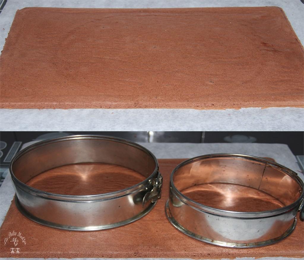 Esta receta está versionada de varias recetas que tenía almacenadas, ninguna me convencía lo suficiente y al final probando decidí hacer una mezcla de varias. Es decir, la base la he hecho con un bizcocho genovés o gioconda de chocolate, y me pareció que quedaría muy bonito si añadiera otra plancha de bizcocho como relleno. Y al relleno también le he dado un toque diferente que creo que ha sido muy acertado.