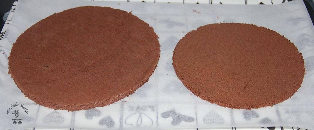 Una vez enfriado lo que vamos a hacer es recortar dos círculos (o cuadrados, según vuestro molde) uno más grande que otro. El primero deberá ser del mismo tamaño que nuestro molde, y nos servirá de base. El segundo un poco más pequeño, que nos hará de relleno.