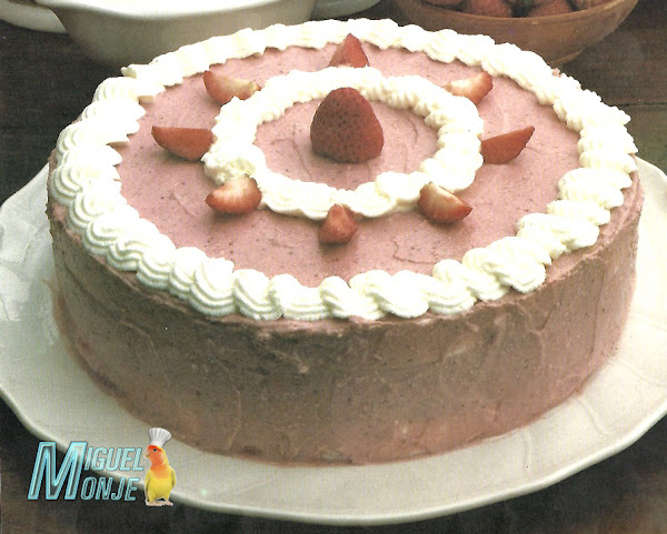 Y el resultado es nuestra exquisita Receta de Postre, de Tarta Helada de Nata con Fresa.
