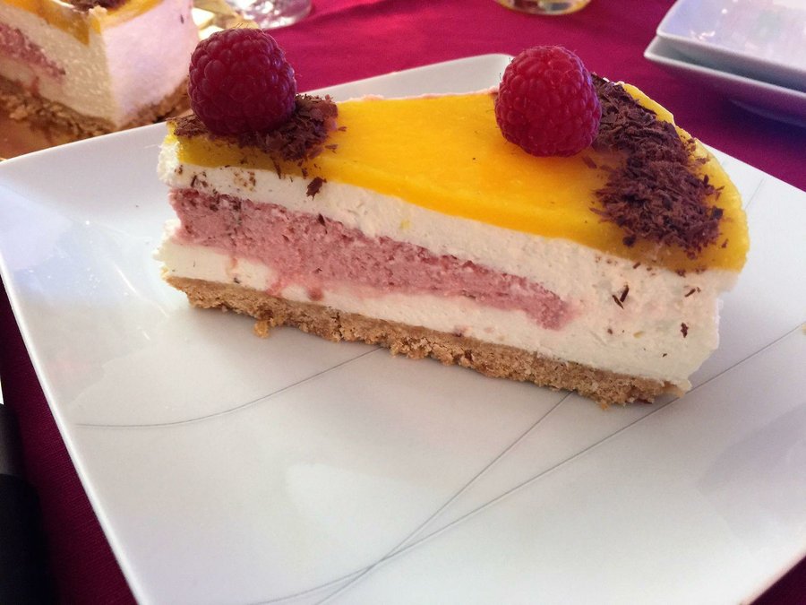 Incorporamos al resto del mango y de aquí la vertemos sobre la tarta que ya estará cuajada.